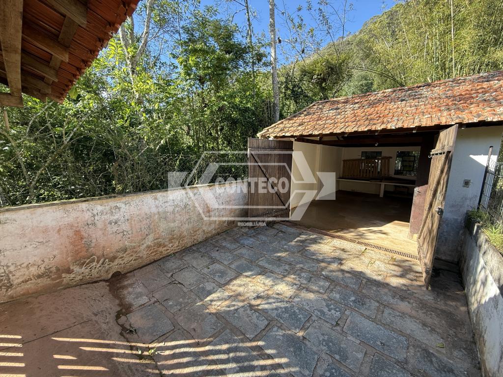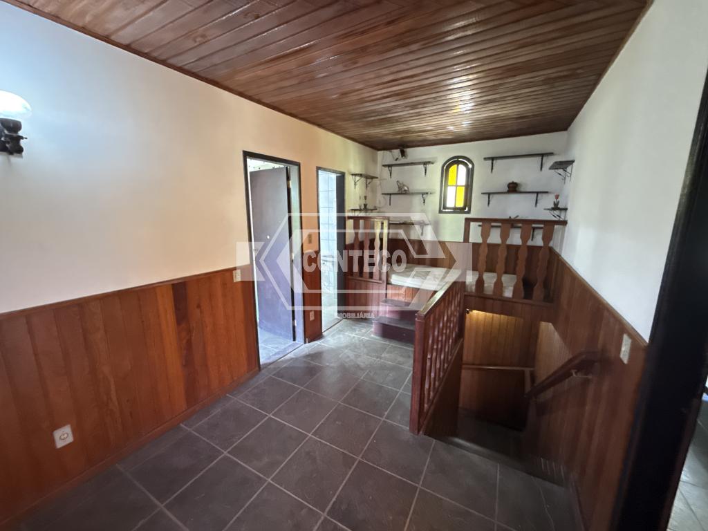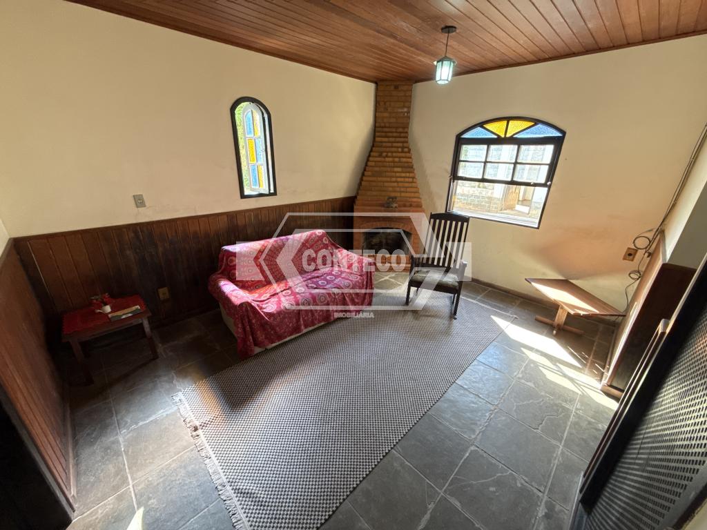 O imóvel possui dois andares. No primeiro pavimento: varanda, banheiro, quarto, cozinha com fogão a lenha e sala com lareira, oferecendo aconchego e praticidade. No segundo andar: dois quartos, banheiro, sala e um escritório, garantindo boa distribuição interna.