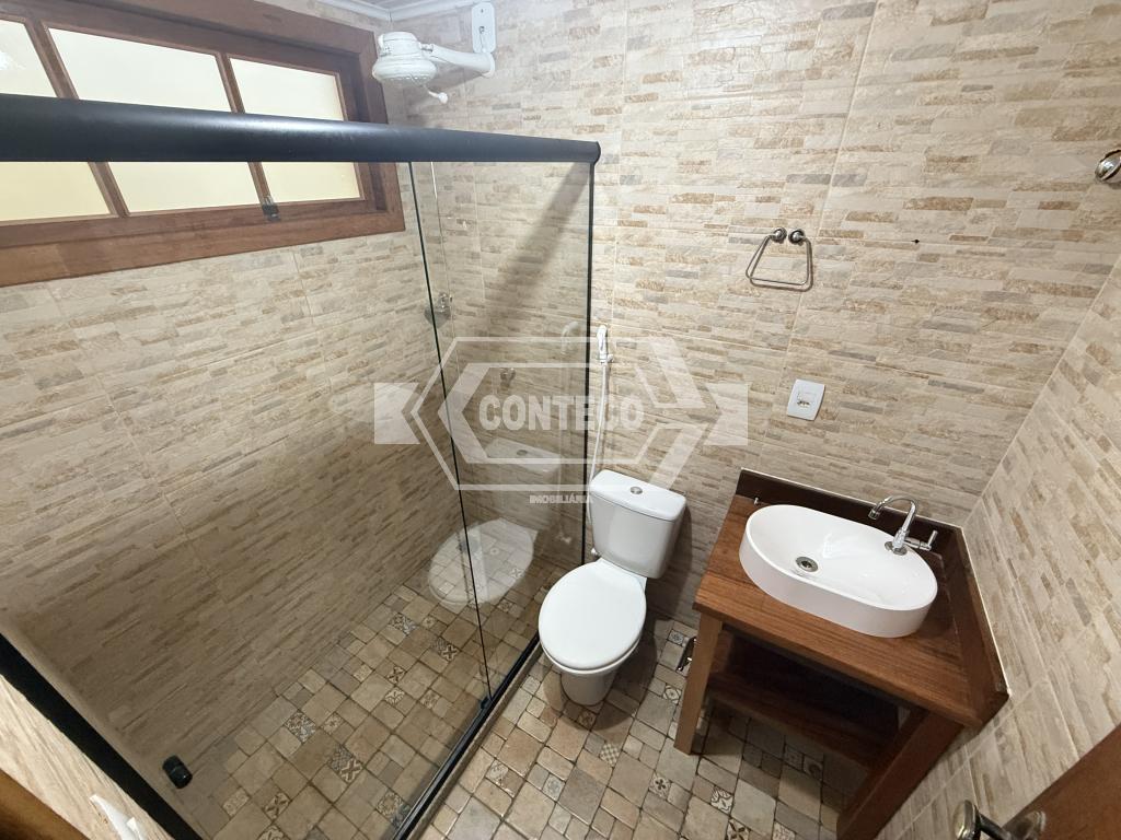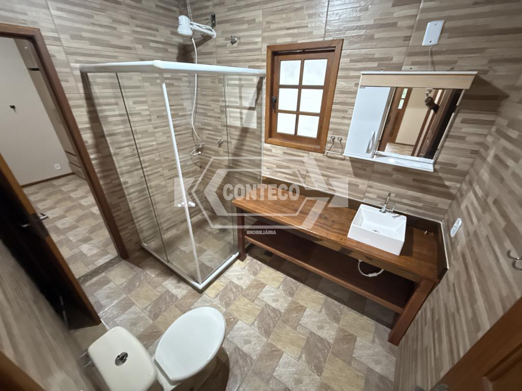 No segundo andar, há uma varanda ampla com acesso pelos três quartos, além de um banheiro social e outra suíte.